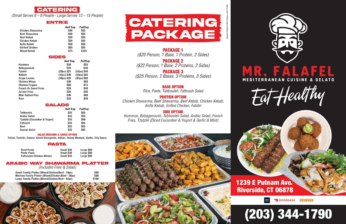 Introducing the menu of "Mr. Falafel", a delightful Mediterranean eatery located at 1239 E Putnam Ave, Riverside, CT. This vibrant restaurant offers an extensive selection of dishes, from traditional Turkish pies like the savory Beef Pie and Spinach & Feta Cheese Pie to delectable Middle Eastern sandwiches featuring beautifully seasoned Beef and Chicken Shawarma. Each sandwich bursts with flavor, accompanied by fresh toppings like garlic, lettuce, and tahini.